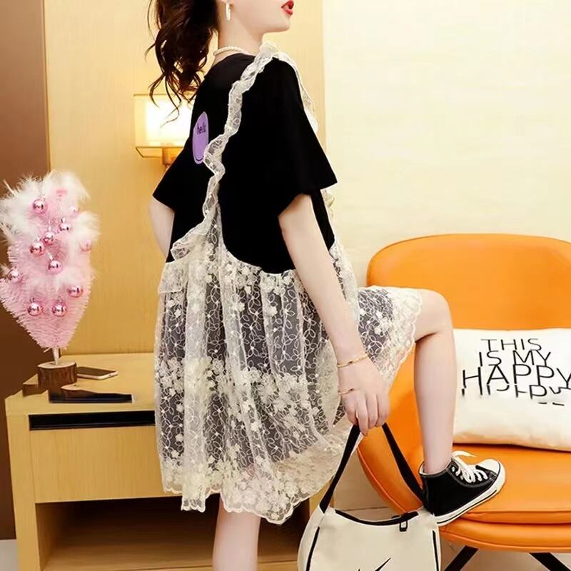 花柄レース気質切り替えデザインスタイルゆったりカジュアルワンピース【DL-3070】