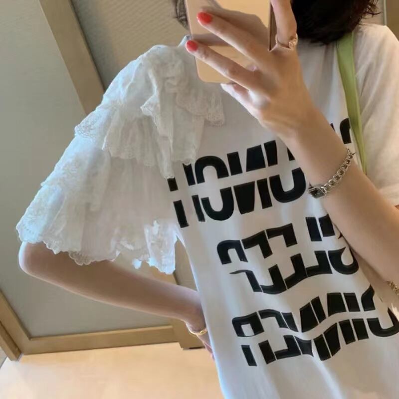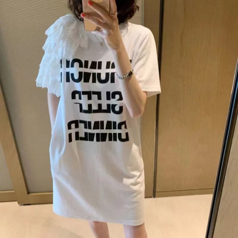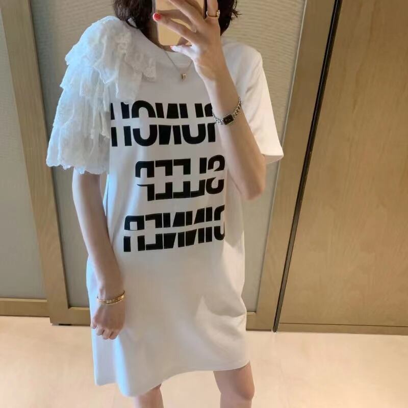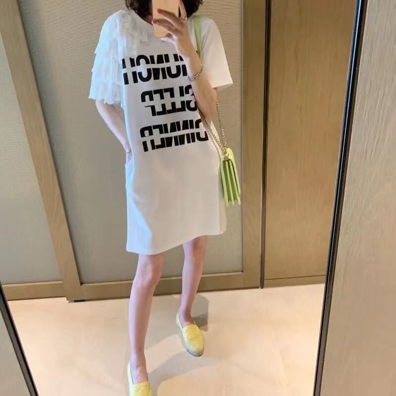 フランスフレンチ袖デザイン感字母プリントTシャツカジュアルワンピース【DL-3072】