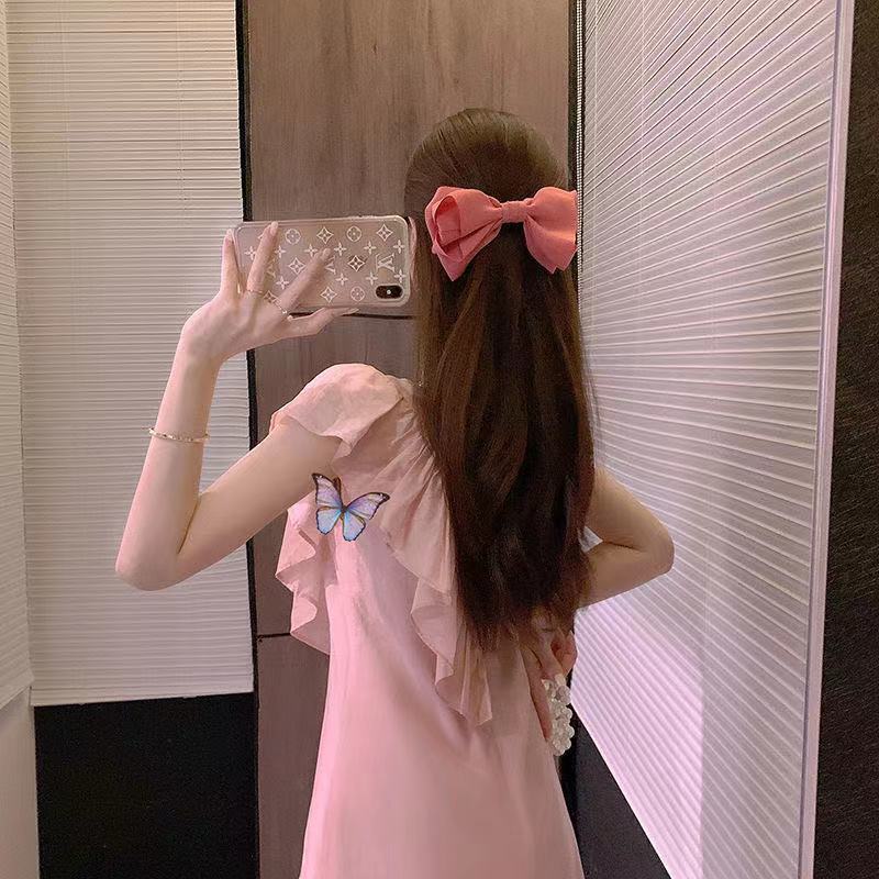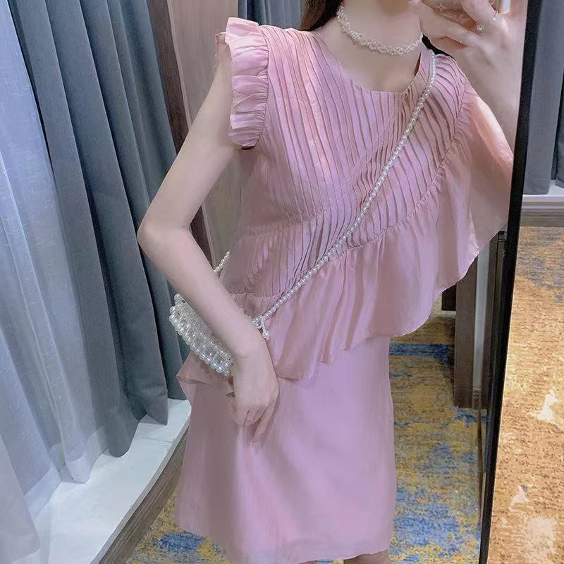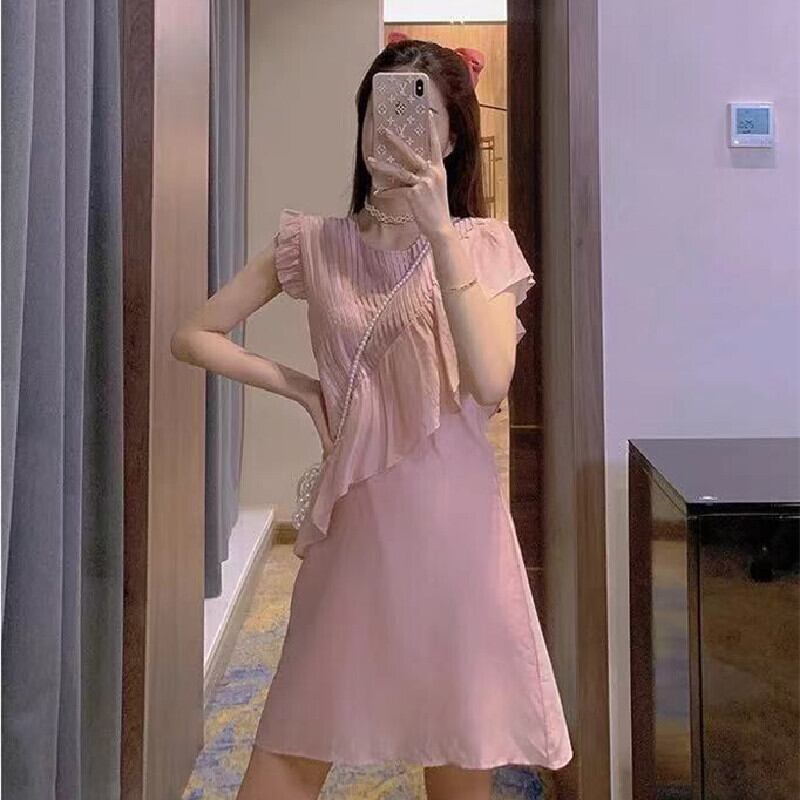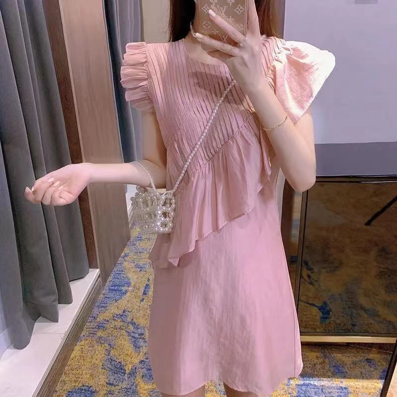 フリル裾不規則フレンチ袖カジュアルワンピースデートコーデ優しい【DL-3100】